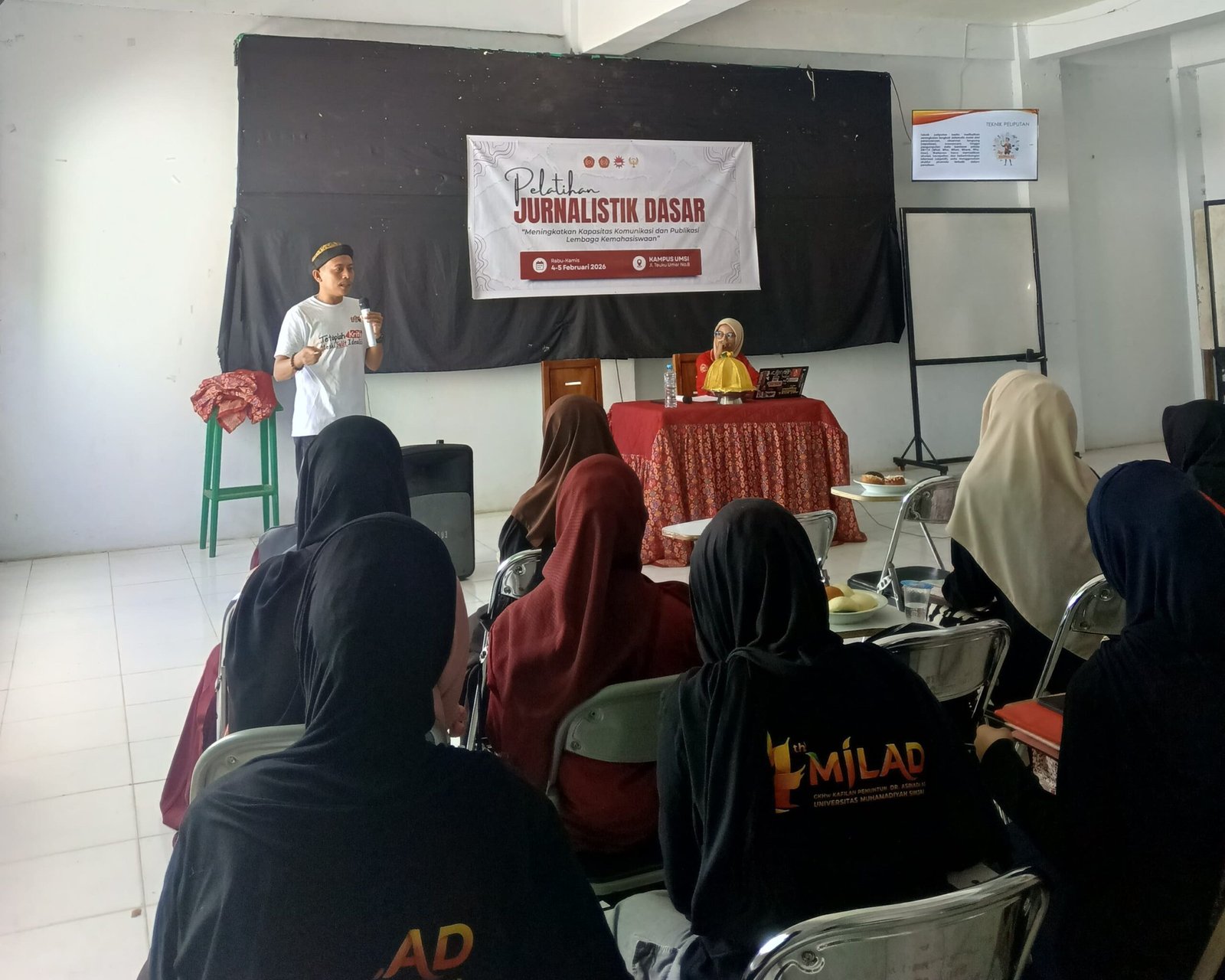 Sementara itu, Presiden Mahasiswa BEM UMSi, Muh. Mahdi Akif, dalam sambutannya menyampaikan bahwa pelatihan ini mengusung tema “Meningkatkan Kapasitas Komunikasi dan Publikasi Kemahasiswaan”.
